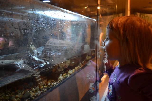 For now, enjoy this adorable photo of M looking at a frog at OMSI