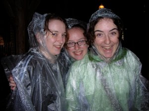 Disney Land!! Our first family vacation in a long, long time. Jess, Cor, before you complain that this is not a very good photo, let me ask you a question. Do you know how hard it is to find a photo of the three of us where one of us is not goofy? I’ll just tell you: it’s very difficult. So, this one will have to do. Anyway, we grew up singing Disney songs at the top of our lungs. Don’t believe me? I dare you to spend 5 minutes around my family (well, my mom, sisters and I…Dad’s not one for belting show tunes) without someone quoting, singing, humming a song from Mulan, Beauty and the Beast, or Aladdin. It’s in our blood. I swear our little red blood cells swim along merrily singing Hi Ho, Hi Ho, It’s off to work we go. So, obviously, this was truly a magical vacation for us all. Even though it rained, and I was grumpy because I got cold. Cold is my enemy. My Jafar. My Sher Khan. My Evil Stepmother. My…well, you get it. Good thing I have two grounded sisters who can snap me out of even the deepest pity party. We’re in Disney Land, for goodness sake!