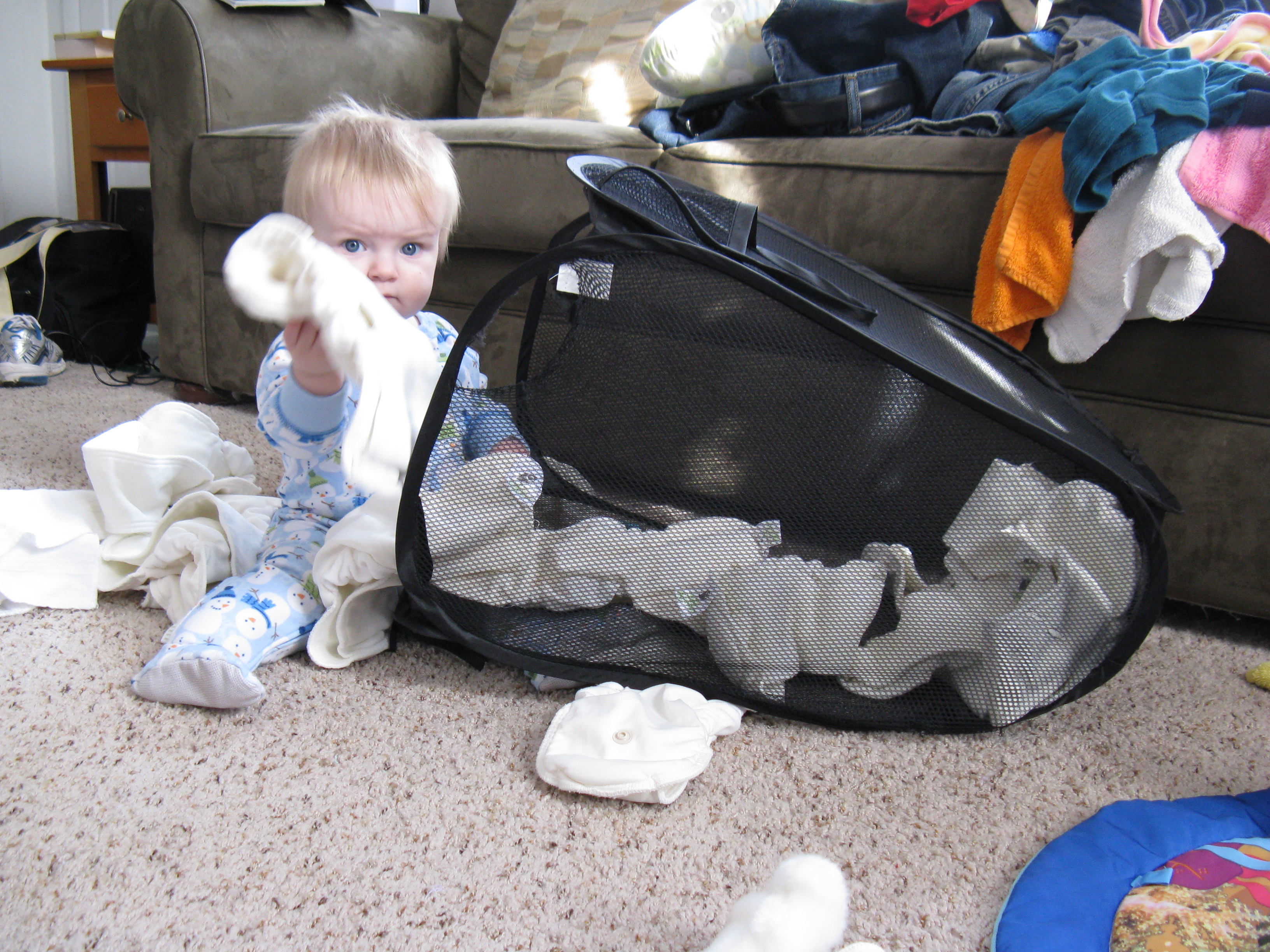 And, we finally make it to last year. Oh my goodness, how Mo-bug has changed. Here she’s being a huge help with the laundry. It’s funny, cause now I can say she actually does help. She’ll transfer clothes to the dryer. She’ll carry clean clothes to the couch. March 2013 we’ll have another little girl who may (or may not) look a lot like this little girl, probably “helping” me in much the same way, as I wash the same cloth diapers. But that’s looking to the future, and this post is about the past.