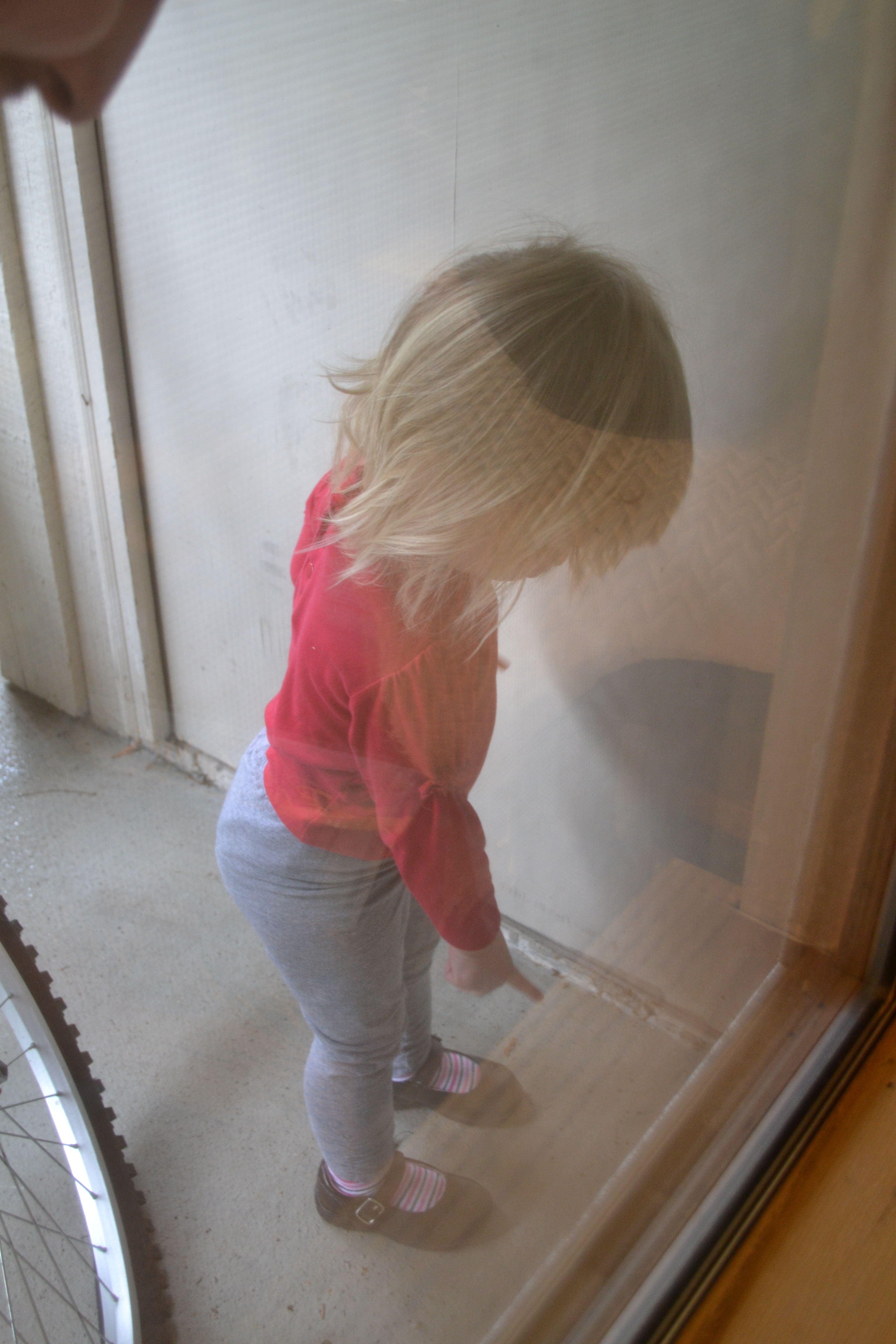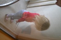 It’s not the best picture in the world, but it has a good story. Mo found a spider on our porch outside. It just so happens her favorite song in the whole wide world is “The Itsy-Bisty Spider”. So, at least once a day, she starts making the signs that accompany the song and points outside, usually just minutes after Andy gets home from work. She then firmly takes his hand and leads him to the sliding glass door so that they can do their daily Itsy-Bitsy visitation. She points, laughs, and dances while they sing the song.