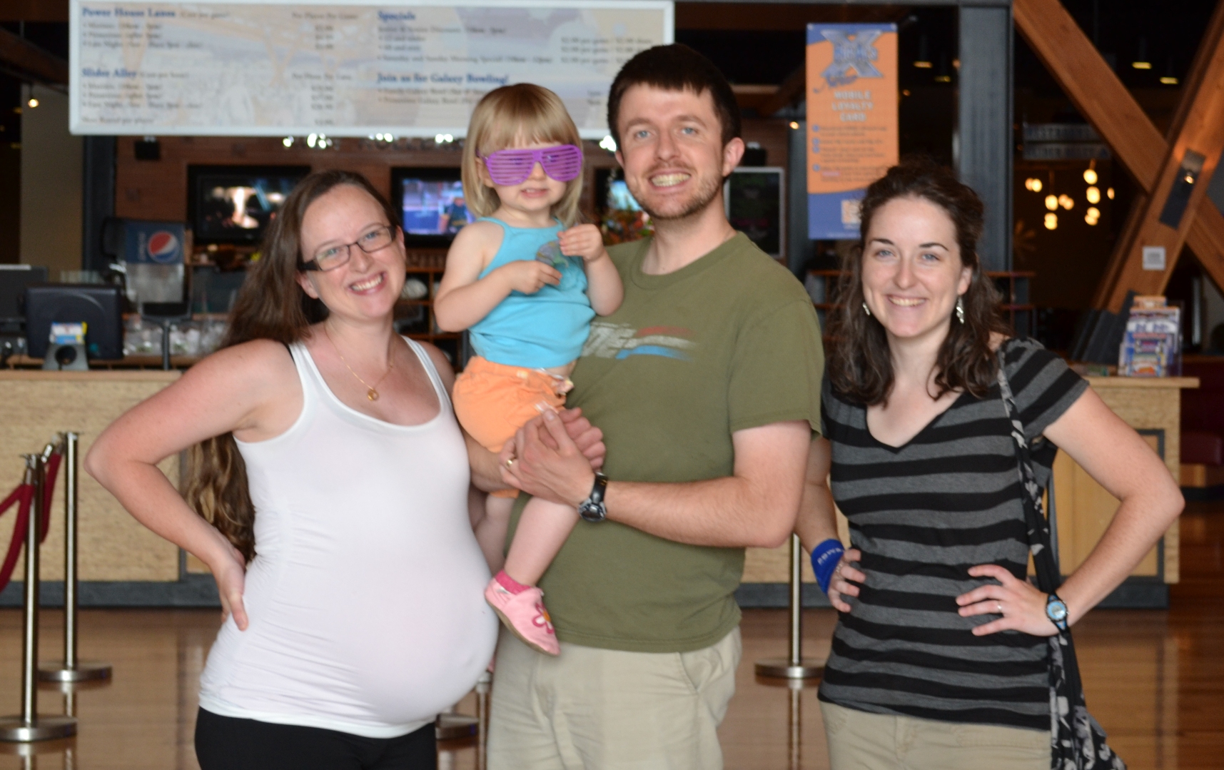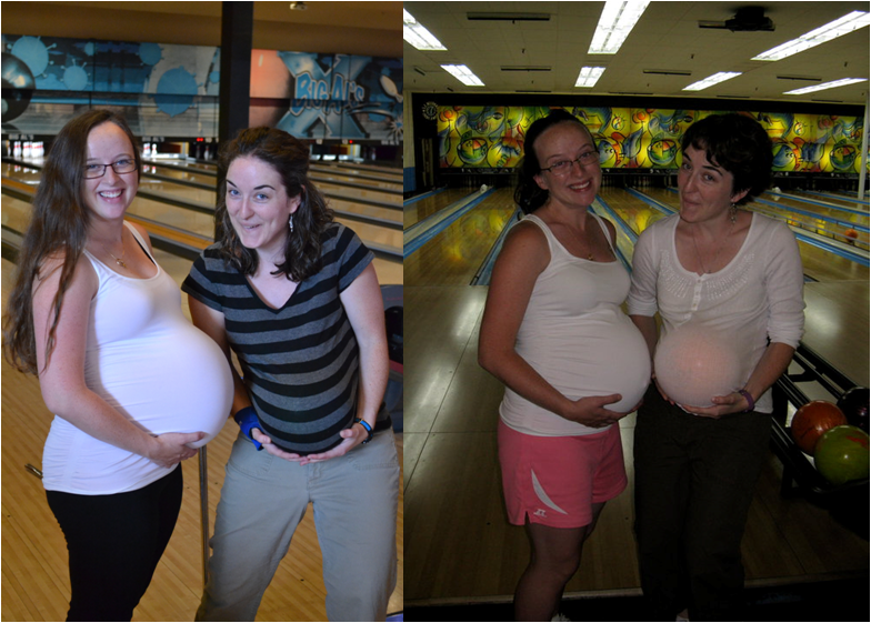 On Mo’s due date, we went bowling in Logan (the picture on the right). Jess and I set up the same photo we took two years ago. I didn’t expect her to make the exact same face though!