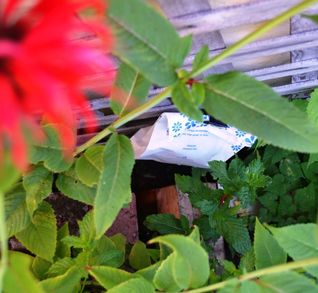 Hang the bag in a shady area, near your garden. Pray that it doesn’t get soggy in the rain or smashed by anxious 2 year old hands between now and hatching time.