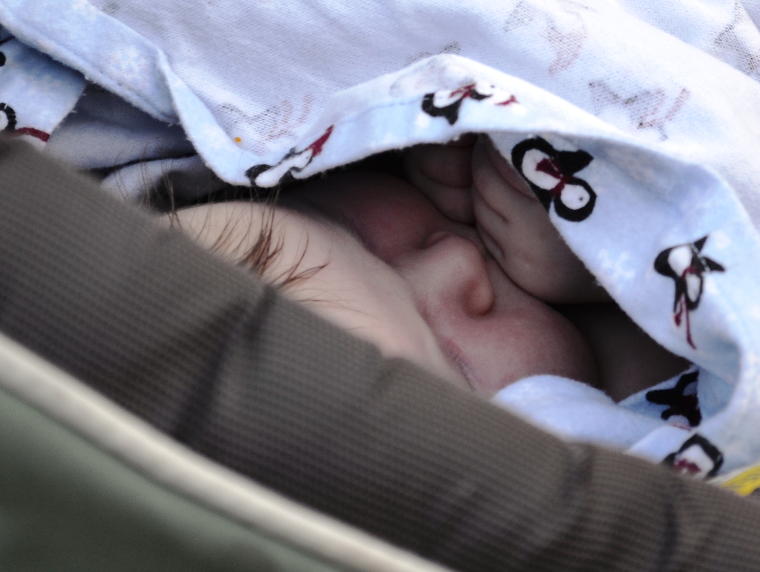 We may have a thumb-sucker on our hands (ha ha, I seriously did not intend that pun. That’s right, I’m just naturally funny… Right?… Right?). Mo made no effort to suck on her hands, but in the last couple days Lu has discovered them and loves to suck on a knuckle or finger or whatever appendage happens to touch her face.