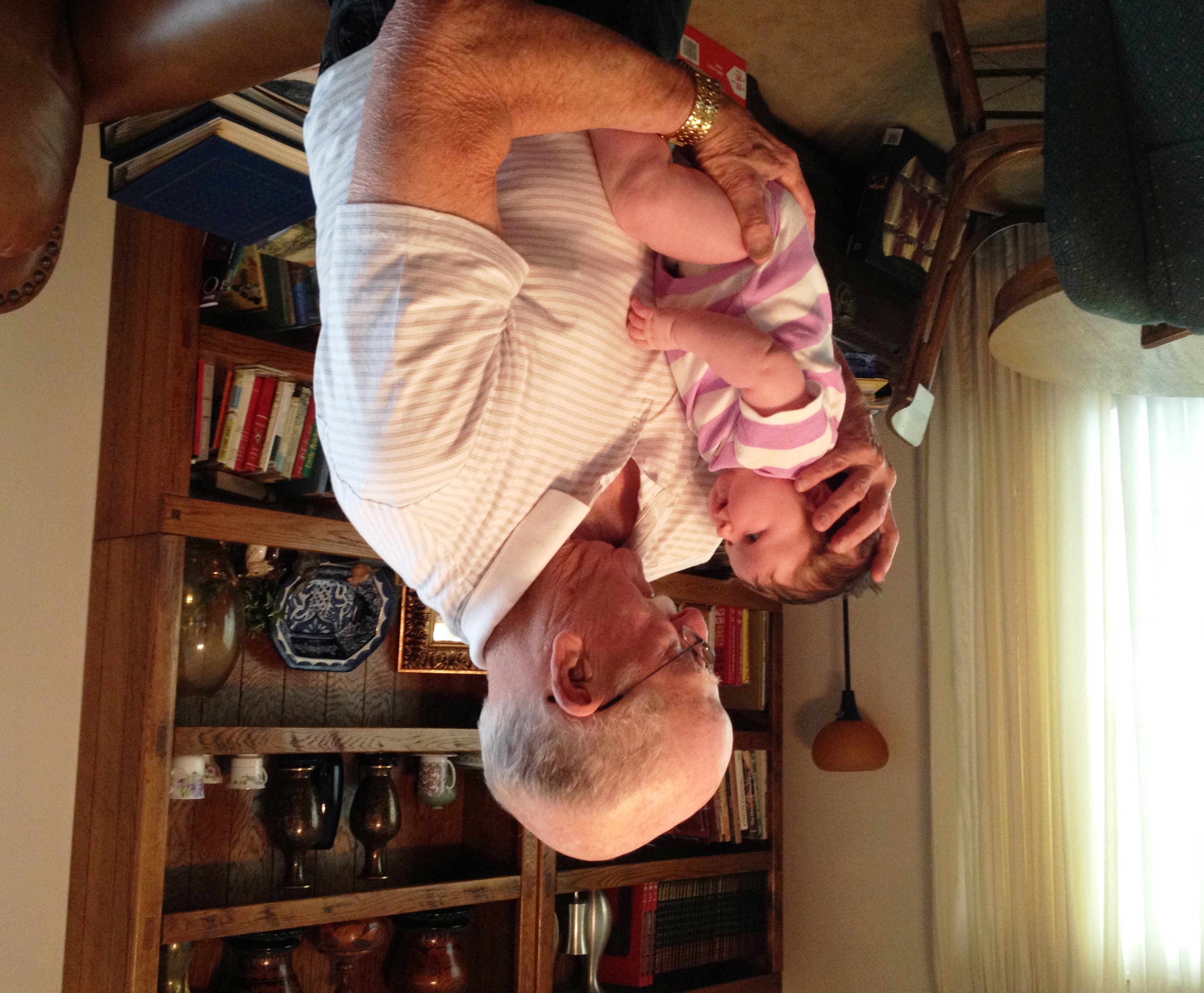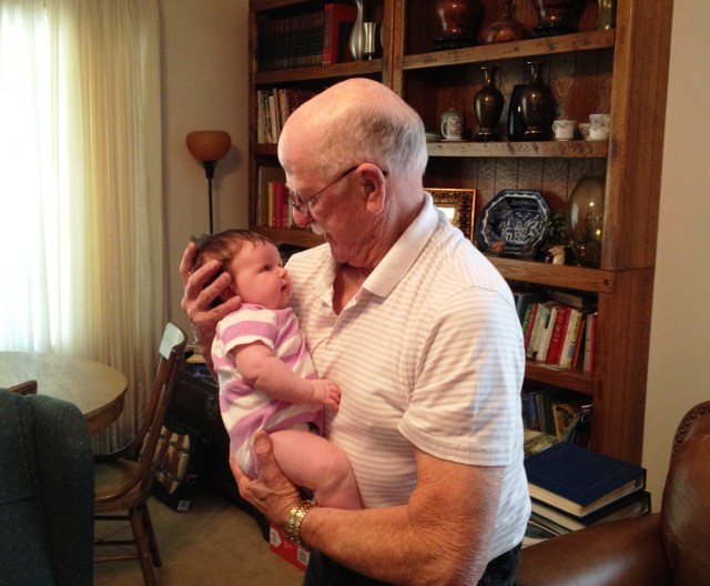 Great Grandpa Wes. Jessie was visiting him all last week, and they built a formidable rock wall on the south side of the house. It make sense that Grandpa put her to work. Have you seen her muscles? And, she got a break from chasing my babies around. Apparently they did nothing but work, nap and watch the Olympics. Sounds good to me.