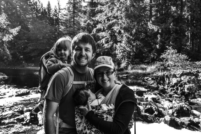 Back to the hike, Abbie’s Mom snapped this excellent family photo (I may have gone a little crazy with the clarity filter in Lightroom, but it’s what I’m digging right now. Look at the contrast you can get in black and white!):