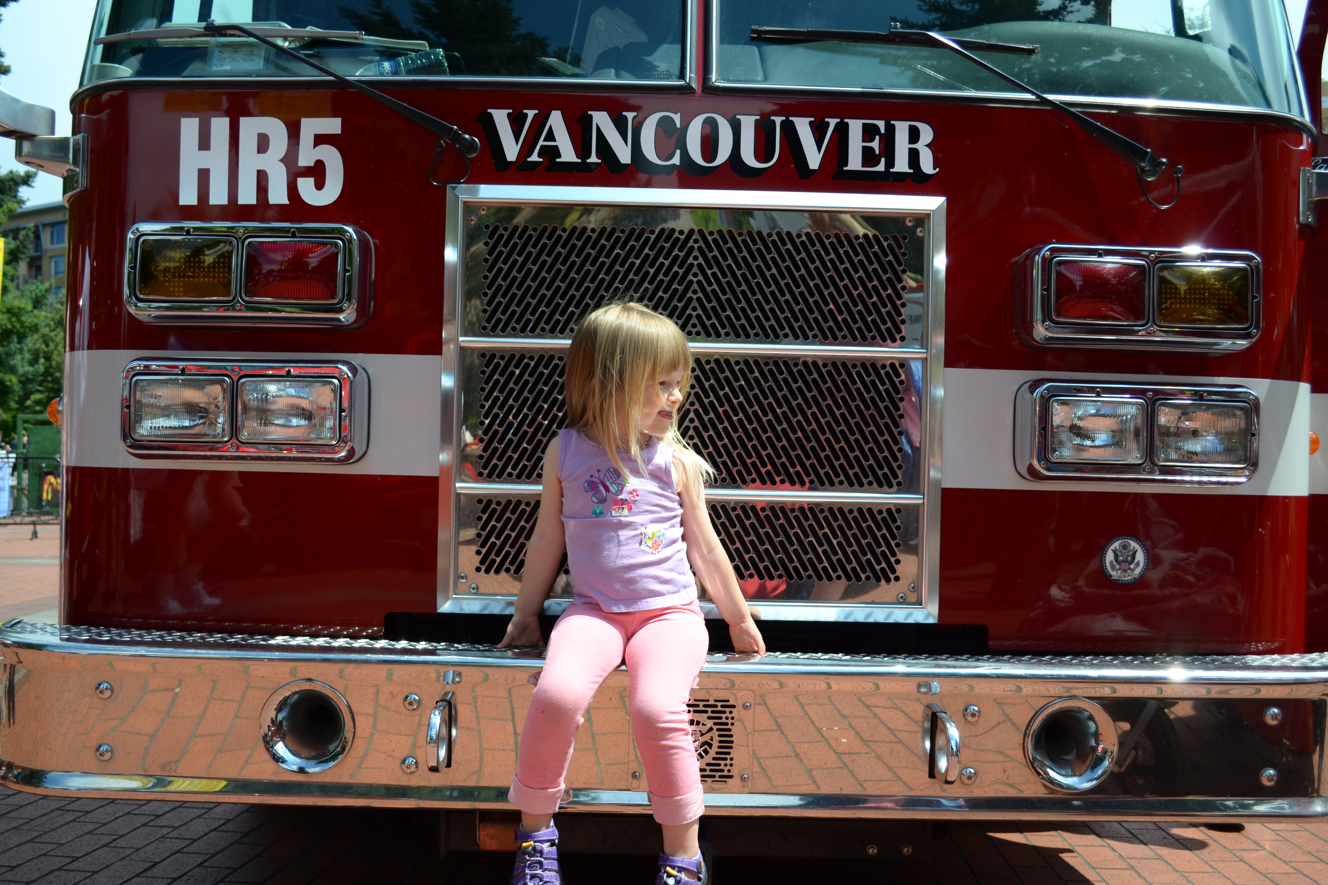 However, we continue to find awesomeness on this side of the river too. For example, this past Saturday we went to the Vancouver Farmer’s Market, which is generally already impressive. We were surprised to find out it was also Firefighter weekend! A giant fundraiser for some of my favorite, every day heroes.
