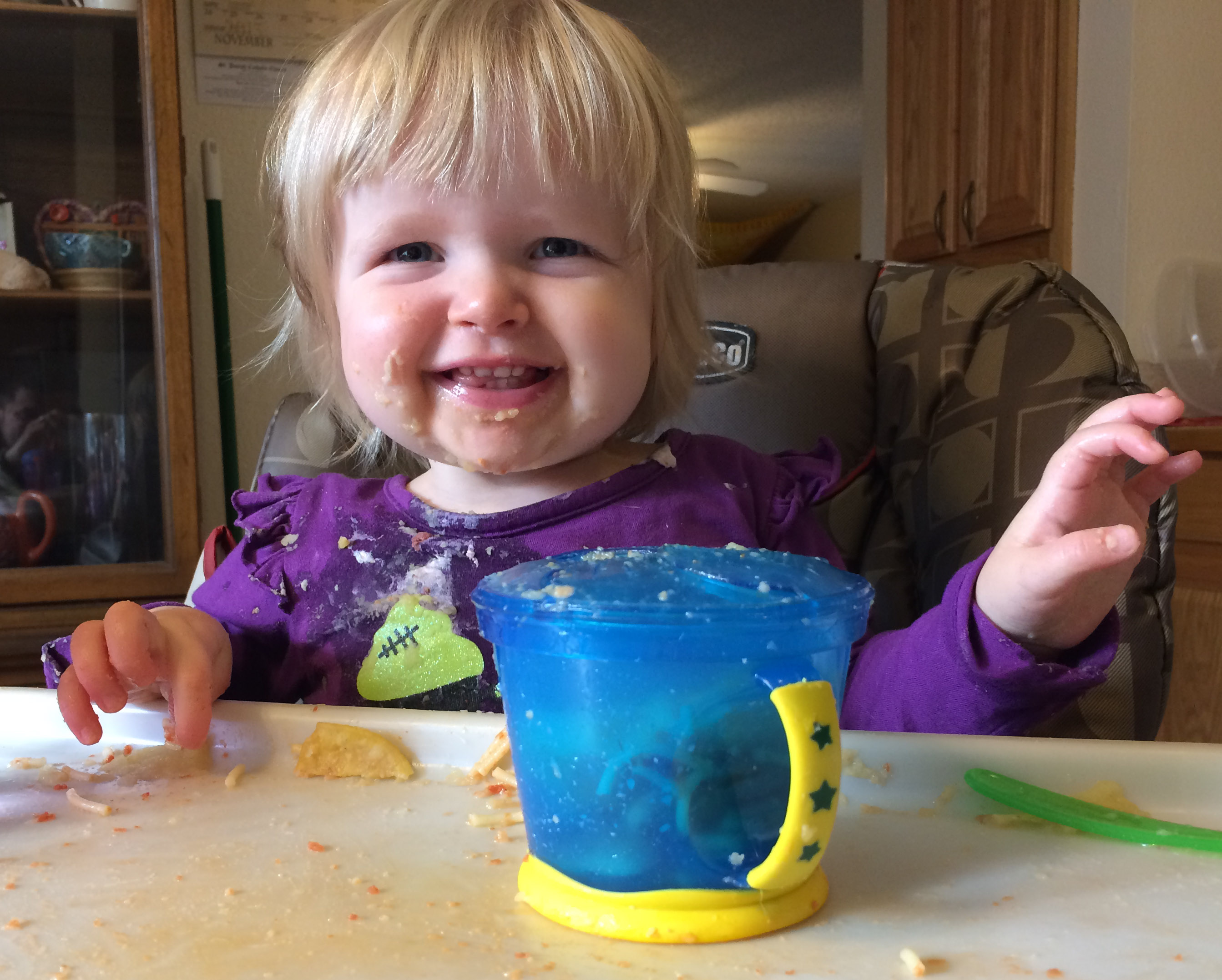 In other news around Casa Elder, Lu has figured out how to catapult food. Quite literally loading up one end of her spoon with a bean or five and using that extra leverage to get surprisingly good distance as she flings them across the room.