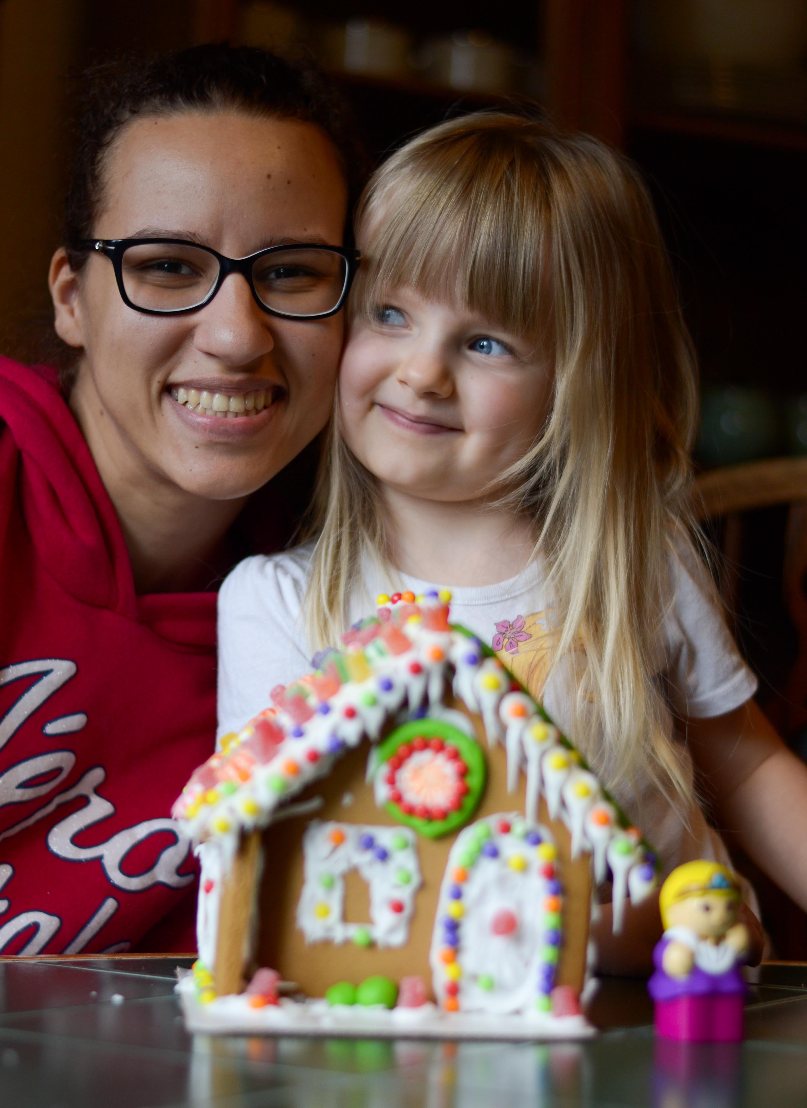 Next time, Future Caitlin, assemble the walls in advance, like hours in advance. Then little (and big) fingers won’t knock over gingerbread pieces or break them.
