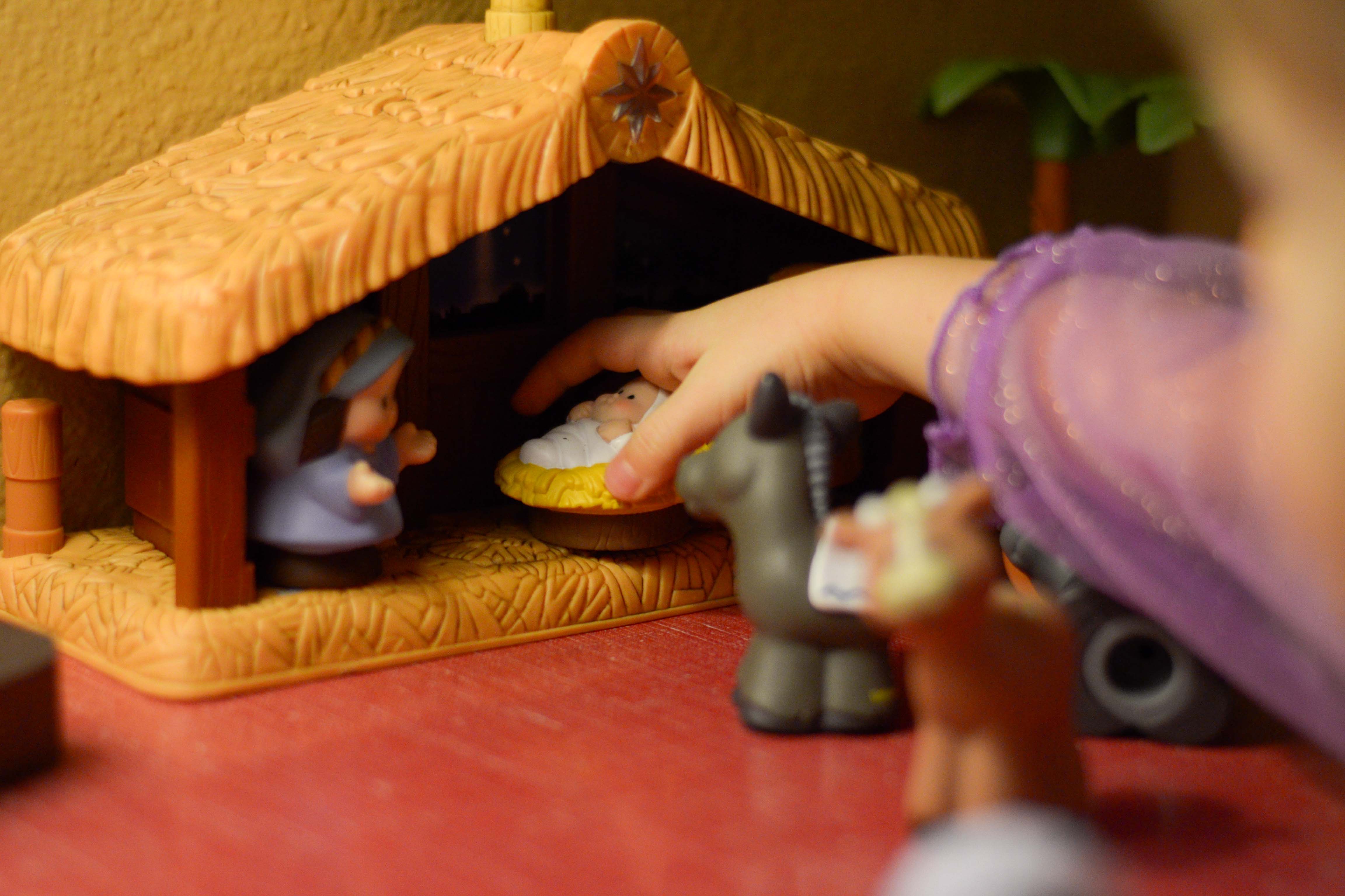 We set our manger up on the third Sunday of Advent and leave baby Jesus out of it until Christmas Eve. On Christmas Eve we turn off the lights and use our pink advent candle as we read the birth of Jesus. Then we all go get Jesus and carry him to and place him in the manger while we sing. This year we sang Away In A Manger because the boys had just learned it and we were all able to participate fully. This year was super hard for us to do many traditions since we moved two days after Christmas. In the past we leave our tree up until Epiphany Sunday and we would sing around the tree each day and open a gift (we reserve some too). We are still trying to find more traditions for the Christmas season. This year we want to try having our kids that are able to participate give Jesus a special gift each day during the Christmas Season. Whether it be a spiritual goal or something they want to make or draw, we are just going to let them choose and see how it turns out.