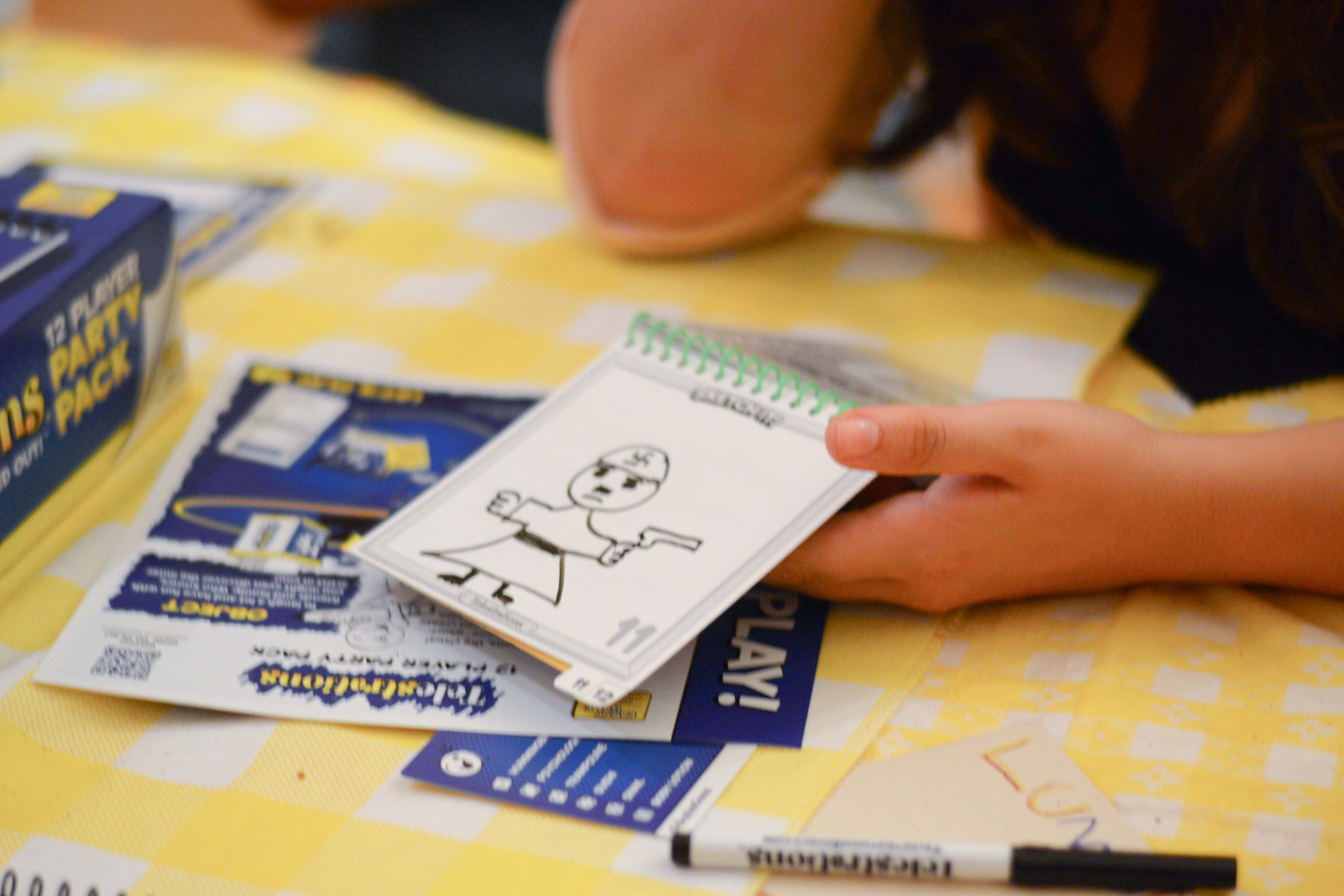 Oh wait. My baby is a pro sleeper. So, I’m good to play any time! Just grab a group of friends, snacks, maybe a beer or two and bring your mad drawing skillz.