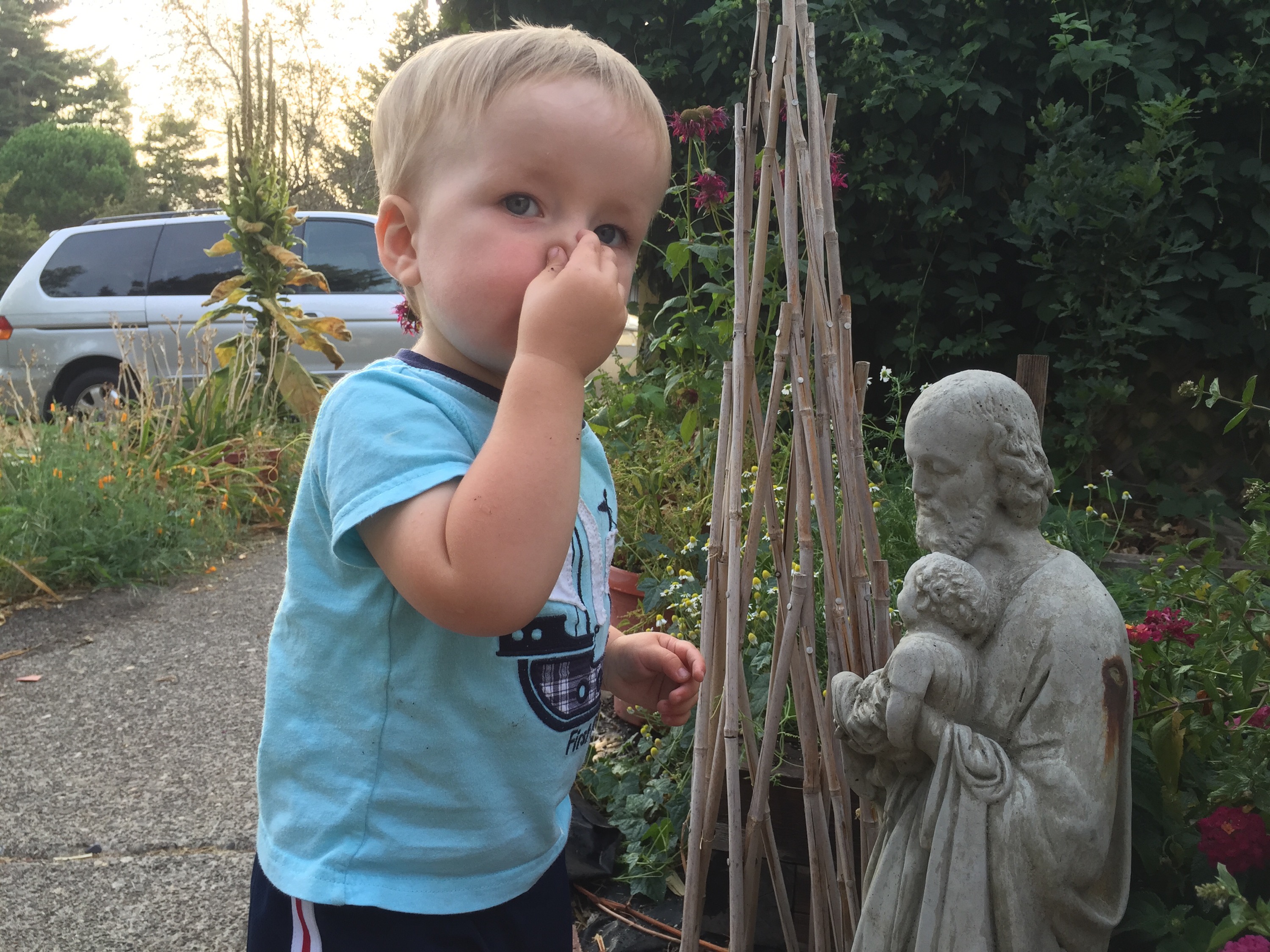 Every time he walks past our new St. Joseph statue he says “baby!!”. And then animatedly explains that the baby also has a nose.